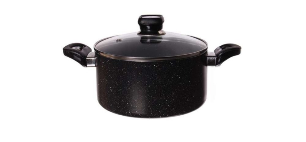 این قابلمه ایرانی از جنس ترکیبی آلومینیوم با روکش گرانیتی و درب شیشه ای ساخته شده . تیارا قابلمه سایز را در سایز 18و رنگ مشکی عرضه نموده. گرانیت ماده ای طبیعی است که کاملا بهداشتی و فاقد سرب و کادمیوم می باشد و با خاصیت حفظ طعم غذا ، گرما را در خود نگه داشته و غذا دیرتر از ظروف معمولی می سوزد و با استفاده از آن می توان از آشپزی با اطمینان و سلامت پخت بالا بهره برد. این قابلمه گرانیتی تیارا با پوشش 7 لایه، سطح چسبندگی و مصرف روغن را تا حد قابل توجهی کاهش می دهد و پوشش خارجی از کیفیت بالا و مقاوم در برابر شعله و حرارت نیز برخوردار شده است. تیارا یکی از برترین فروشندگان لوازم خانگی است که در زمینه تولید انواع ظروف پخت و پز، سرویس و قابلمه تک از جنس آلومینیوم آلیاژی و آلومینیوم خالص فعالیت دارد و اکنون با تولید سرویس های نچسب گرانیت، به عنوان یکی از بهترین و با کیفیت ترین عرضه کنندگان ظروف نچسب در بازار محسوب می گردد